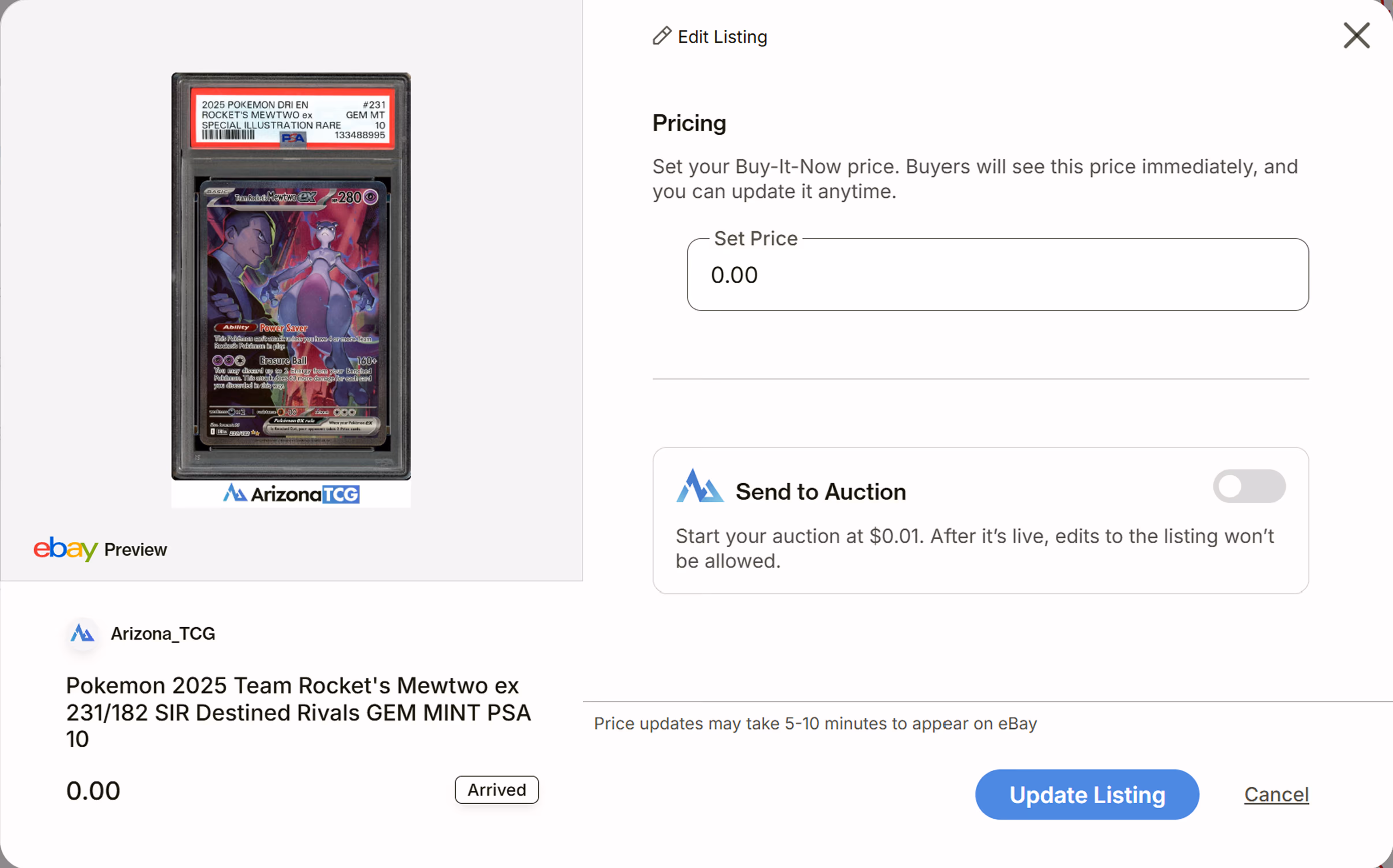We're all about the details at ArizonaTCG. From providing scans of both the front and back of your cards to creating listing titles, we cover it all. We don’t cut corners when listing your cards. Our approach involves entering every possible detail to ensure your listings get the maximum amount of traffic.